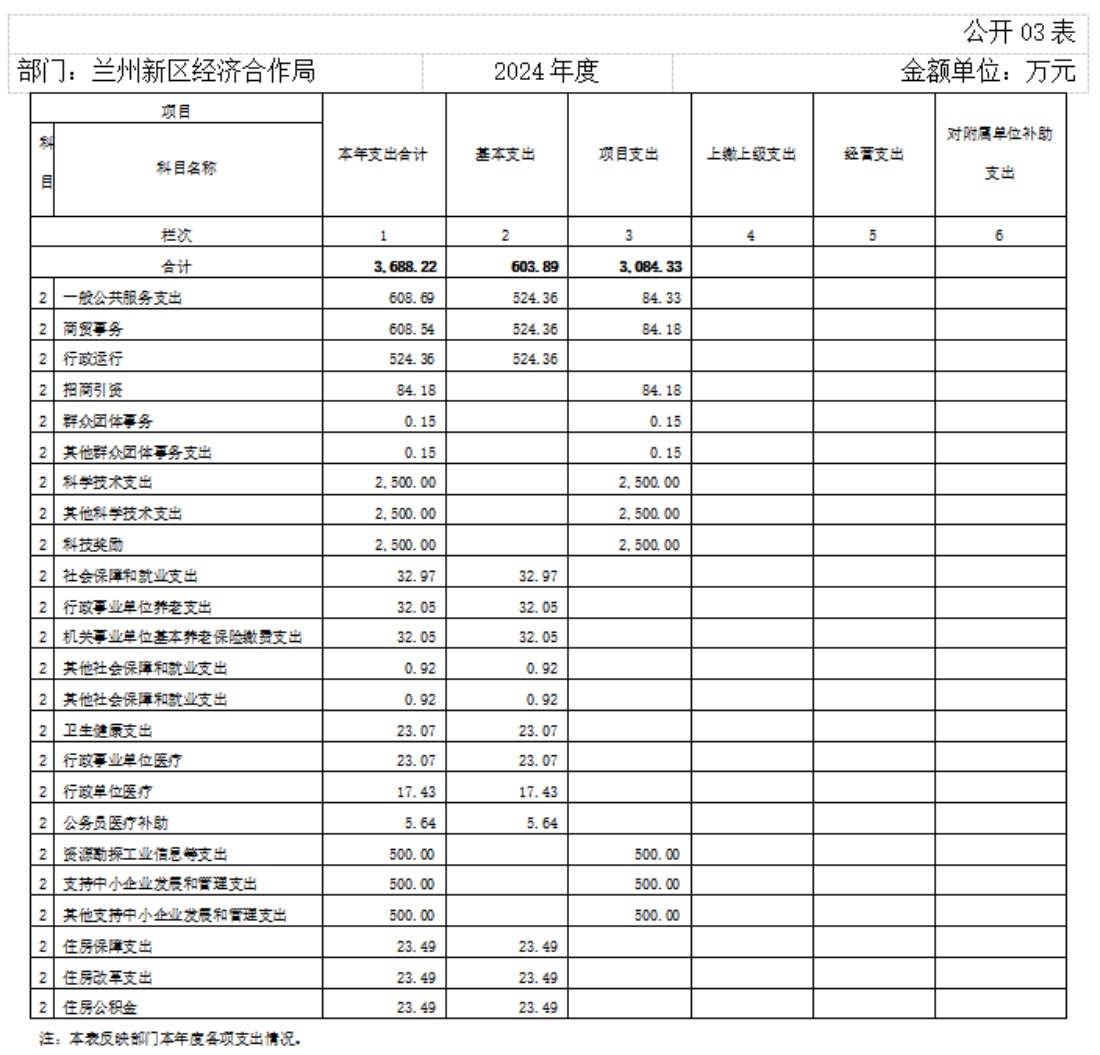 2024年度一般公共預算財政撥款基本支出603.89萬元。其中: