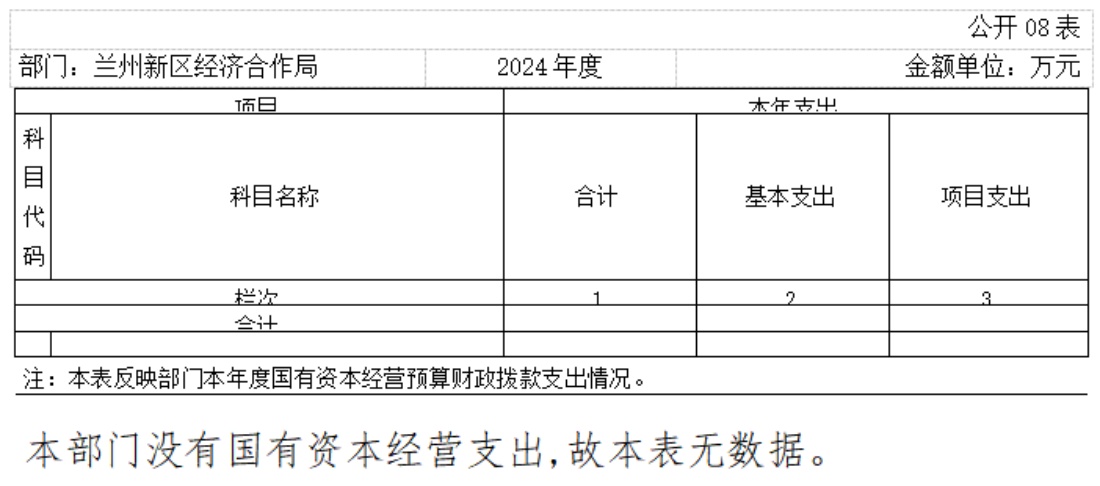 本部門2024年度無國有資本經營預算財政撥款收入,也沒有使用國有資本經營預算安排的支出。