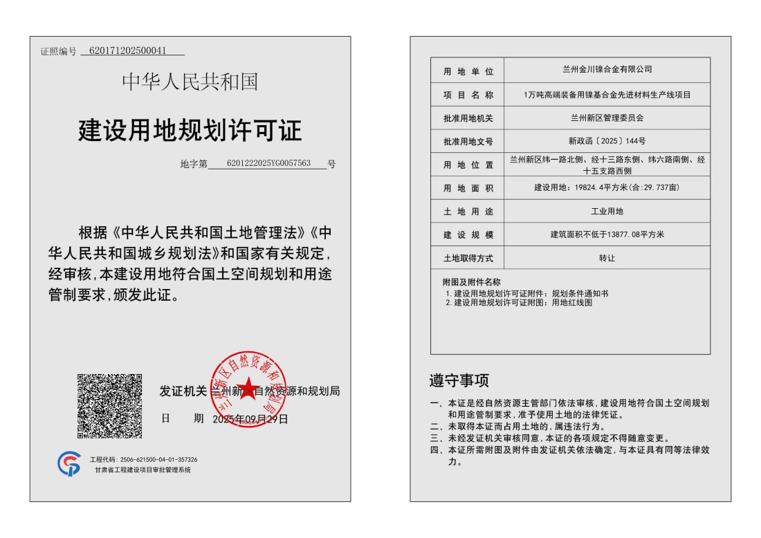 項目名稱:1萬噸高端裝備用鎳基合金先進材料生產線項目